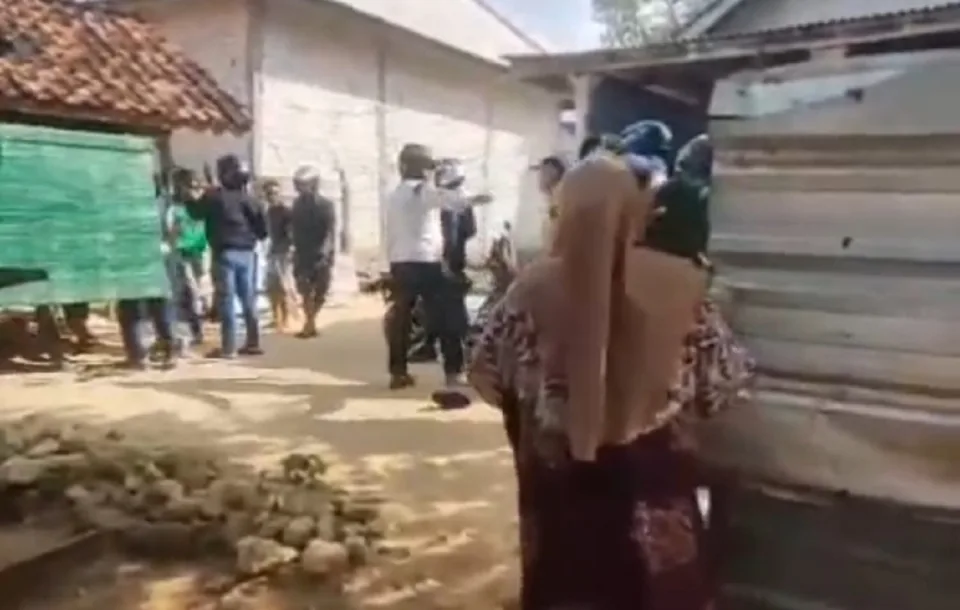 Tampak dalam penggerebekan, dalam video amatir itu, petugas Satnarkoba Polres Pamekasan meletupkan senpinya hingga teriakan histeris warga saat menyaksikan penggerebekan.