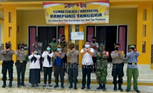 PAMEKASAN,IndonesiaPos – Kasubdit Bhabinkamtibmas Polda Jatim, AKBP Totok Sumaryanto, melakukan pengecekan di Kampung Tangguh Semeru (KTS) Desa Bangkes Kecamatan Kadur Kabupaten Pamekasan, Kamis (06/8/2020).