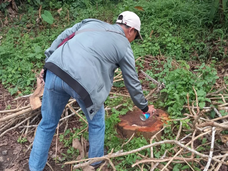 “Setelah kita tanyakan yang menebang kayu tersebut adalah Rino orang kampung Ujung”,ujar Kasi Mulyono saat mendampingi Kabid Bayu.