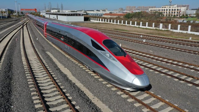 Selanjutnya akan dijalankan EMU KCJB sebagai bagian tahapan test commissioning dengan kecepatan yang dibatasi sampai nantinya mencapai kecepatan teknis yang diizinkan yaitu 385 km/jam.