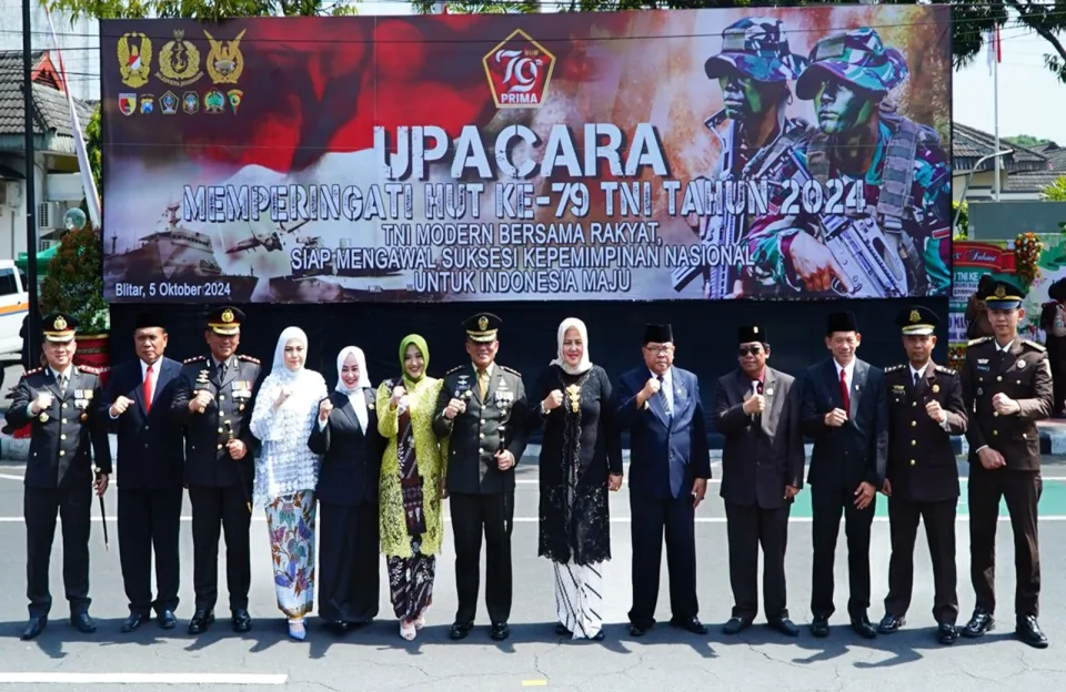 Dalam rangka  memperingati Hari Ulang Tahun TNI ke-79 Kodim 0808 Blitar melaksanakan upacara dengan tema, ”Tni Modern Bersama Rakyat, Siap Mengawal Suksesi Kepemimpinan Nasional Untuk Indonesia Maju”, didepan Makodim 0808/Blitar Jl. A. Yani Kecamatan Kepanjenkidul Kota Blitar, Sabtu (5/10/2024).