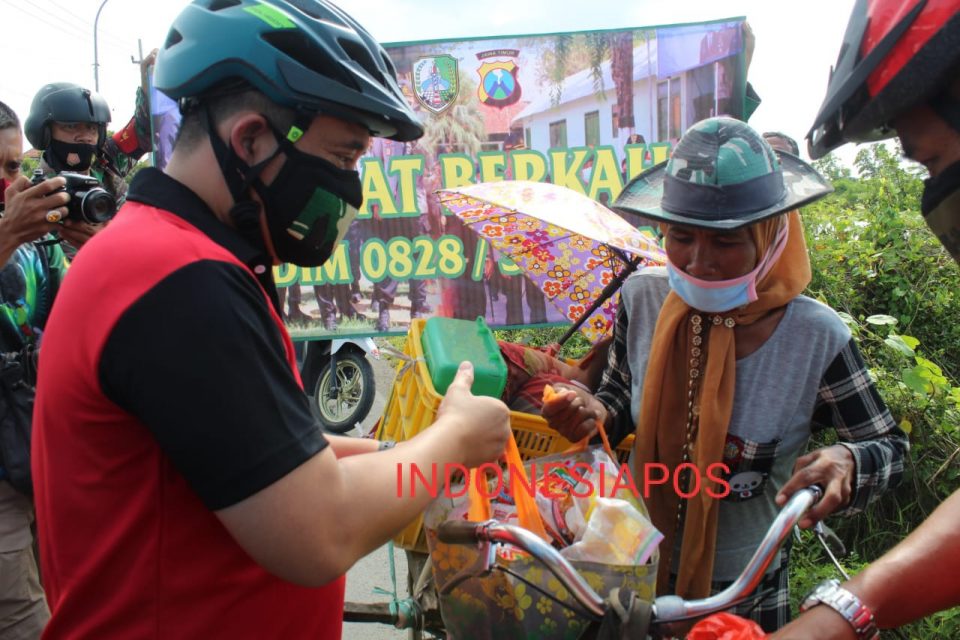 Kodim 0828 Sampang berbagi terhadap masyarakat kurang mampu dan warga yang terdampak pandemi virus corona disease (covid-19) di kabupaten Sampang.