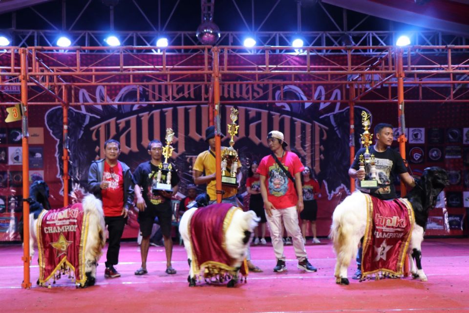 Ratusan peternak kambing seni jenis Etawa ras Kaligesing, mengikuti open kontes Banyuwangi cup kambing PE ras Kalingesing yang diselenggarakan di area Perum Bulog Kantor Cabang Banyuwangi Jl. Argopuro 43 Lingk Sukowidi, Banyuwangi. Minggu (21/05/2023).