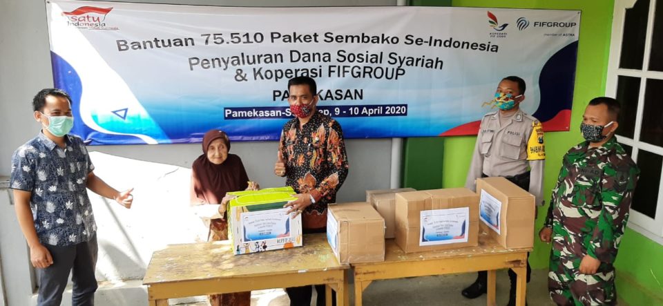 Bantuan yang diberikan kepada keluarga yang kurang mampu akibat dampak wabah Covid 19 yang merebak di Kabupaten Pamekasan. Bantuan tersebut secara simbolis diberikan langsung oleh Pimpinan Koperasi FIF Group kepada warga RW 01 Kelurahan Patemon yang ditempatkan di rumah Ketua RW 01 Kelurahan Patemon.