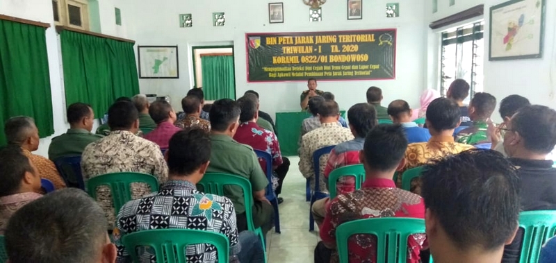 Koramil 0822/01 Kota Bondowoso terus mengoptimalkan deteksi dan cegah dini, temu dan lapor cepat bagi aparat kewilayahan melalui pembinaan Peta Jarak Jaring Teritorial, bertempat di Aula Koramil 0822/ 01 Bondowoso.Jumat (13/03/2020 ).