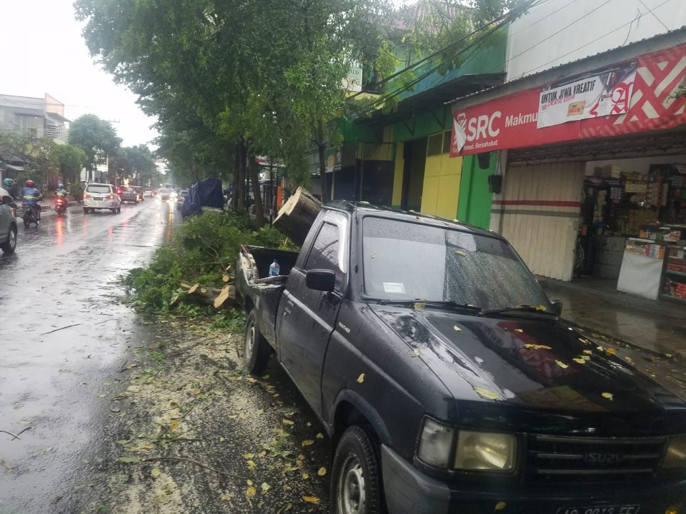 Sejumlah pohon yang tumbang, di kawasan Panglima Polim dan terdapat empat sepeda motor yang tertimpa pohon besar.