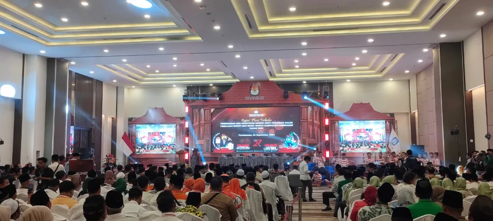Ketua KPU Pamekasan,Mahdi membuka langsung giat Rapat Pleno Terbuka dalam acara Pengundian dan Penetapan Nomor Urut Pasangan Calon Pemilihan Kepala Daerah (Pilkada) serentak pada hari Rabu 27 November 2024 mendatang.