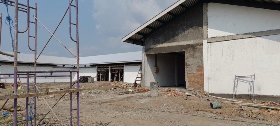 Media yang turun ke lokasi proyek mendapati sejumlah kegiatan pengecoran dan pengerjaan dinding lantai dikerjakan oleh puluhan pekerja. Untuk akses jalan masih belum sepenuhnya rata, masih tatanan batu yang belum teraspal.