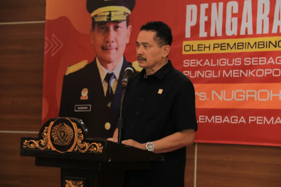 Pembimbing Kemasyarakatan Ahli Utama Direktorat Jenderal Pemasyarakatan sekaligus Kepala Pokja Pencegahan Saber Pungli Menkopolhukam, Drs. Nugroho, Bc.IP., M.Si, memberikan pengarahan penting di Lapas Kelas IIA Kediri Kanwil Kemenkumham Jawa Timur, di Aula Welas Asih Lapas Kediri.
