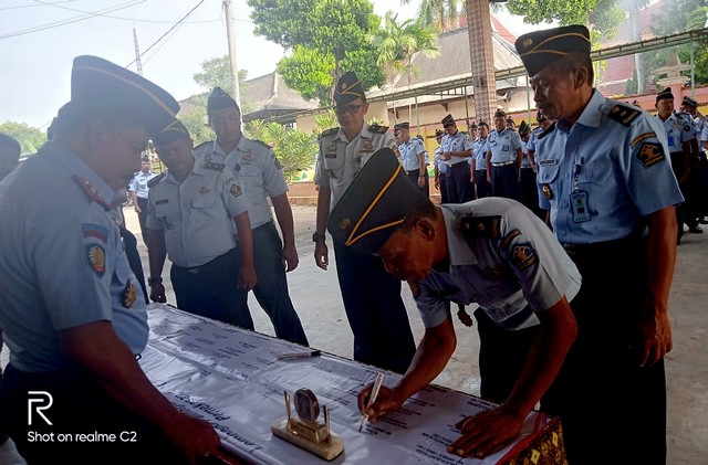 “Janji kinerja yang dituangkan pada Deklarasi merupakan suatu tanggung jawab yang harus diterapkan dan dilaksanakan secara utuh dengan cara penguatan spiritual,”kata mantan Kalapas Kelas II B Bondowoso ini.