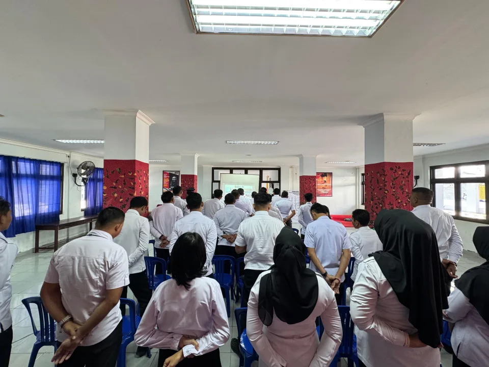 Kegiatan tersebut diikuti seluruh pegawai Lapas Narkotika Kelas IIA Pamekasan, khususnya jajaran staf kantor, yang digelar oleh Kementerian Koordinator Bidang Hukum, Hak Asasi Manusia (HAM), Imigrasi, dan Pemasyarakatan, Kementerian Hukum, Kementerian HAM dan Kementerian Imigrasi dan Pemasyarakatan, pada Senin (15/9/2025).