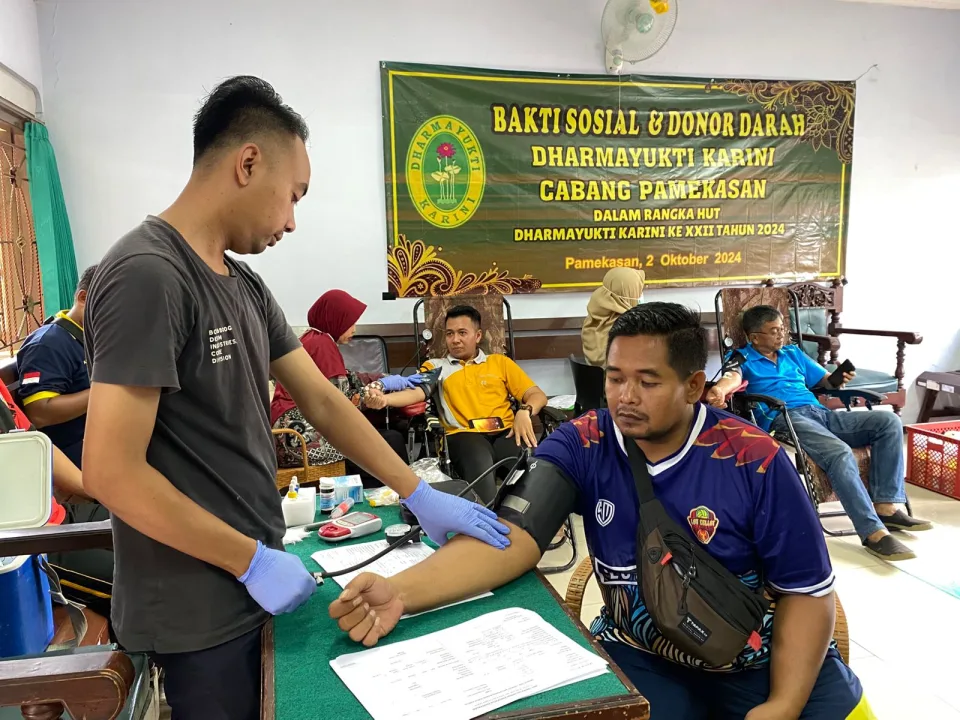 Lapas Kelas IIA Pamekasan Kanwil Kemenkumham Jatim ikut berpartisipasi dalam kegiatan donor darah yang diselenggarakan oleh Pengadilan Negeri Pamekasan. di Aula Pengadilan Negeri Pamekasan pada Jumat (04/10/2024).