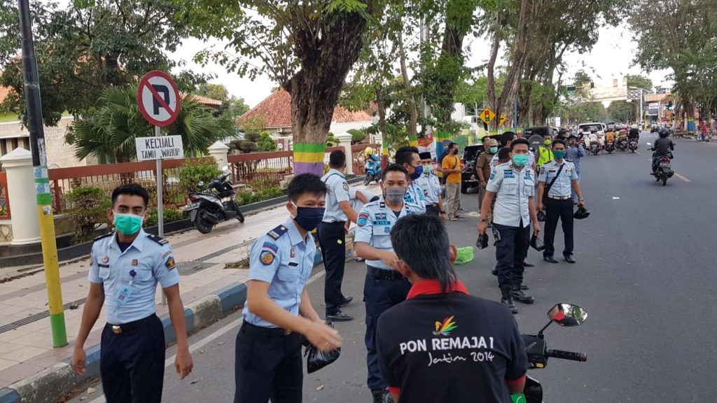 Lapas kelas II A Pamekasan kembali melakukan aksi sosial. Dipimpin Kalapas M Hanafi turun ke jalan membagikan nasi bungkus dan masker, didepan Pendopo wakil Bupati. Kamis, (30/4/2020) sore.