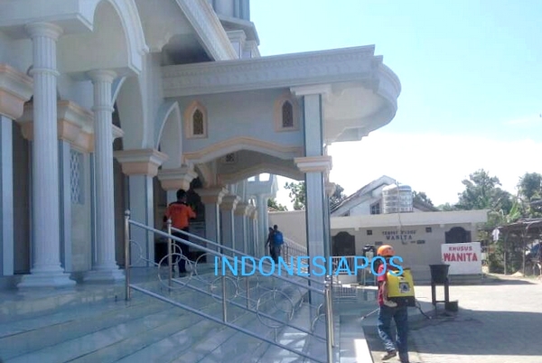 Para Relawan Covid Pamekasan ini masih terus melakukan penyemprotan desinfektan disejumlah Masjid dan rumah warga yang ada di bilangan jalan lintas Pamekasan – Sumenep, dan ring road Timur Kota Ratu Pamelingan. Kamis, (18/6/2020).