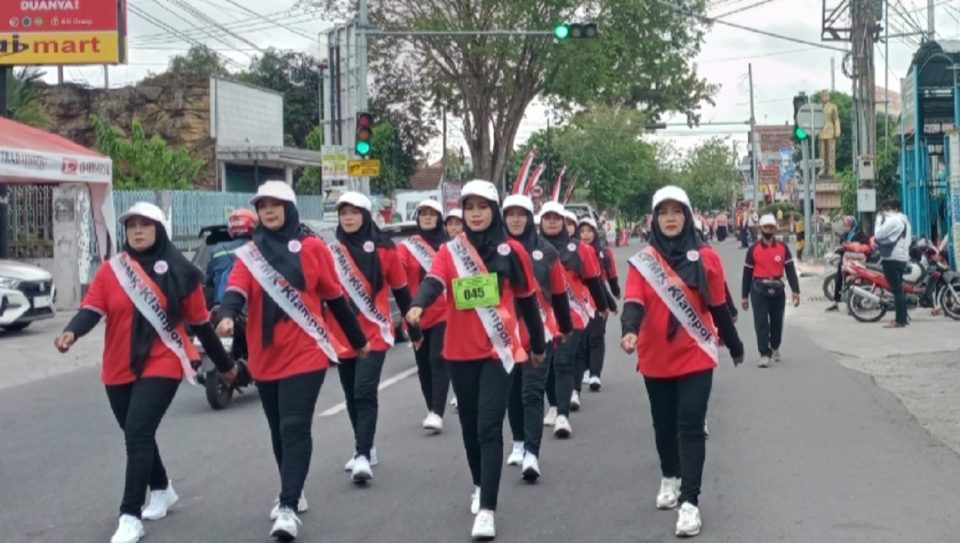 Mengambil start di muka kantor Walikota di Jalan Merdeka, satu pleton pesert dengan nomer urut 45 dengan di komandani Yeni Fatmiati dengan langkah tegap maju jalan membawa pasukannya yang keseluruhannya ibu ibu warga kelurahan Klampok.