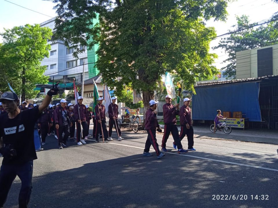 ApalagiJingle Porprov berjudul “Laga” ciptaan Gubernur Jatim Khofifah Indar Parawansa terus berkumandang sepanjang perjalanan. Belum lagi kehadiran maskot Si Ulung yang membuat anak-anak SD semakin terhibur.