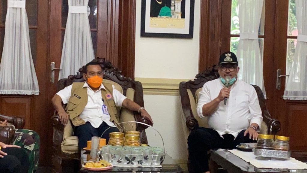 BONDOWOSO, IndonesiaPos – Kunjungan Mayjend TNI (Pur) Eko Budi dari BNPB ke Kabupaten Bondowoso. Sabtu, (20/6/2020) disambut oleh Wakil Bupati Bondowoso, Irwan Bachtiar Rahmat, didampingi Sekda Sayifullah, Kapolres, Dandim 0822, Asisten I, Tim Gugus Tugas, dan sejumlah kepala OPD di Pendopo Bupati.