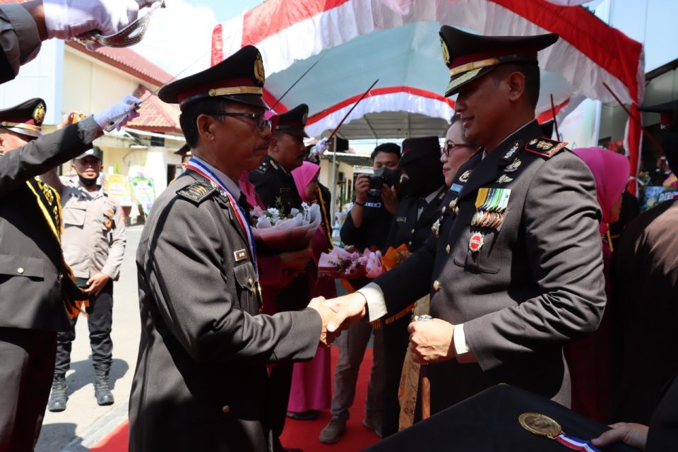Tujuh personel yang memasuki purna tugas tersebut, Kompol Ashar Yelly, AKP Abdul Kodir, AKP Suryono, IPDA Tutik Aminingsih, AIPTU Samsul Arifin, Aiptu M. Taufikurrahman dan AIPTU Hari Pujianto.