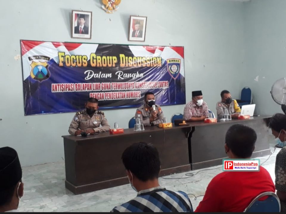 Satuan Pembinaan Masyarakat (Satbinmas) Polres Pamekasan kembali menggelar Focus Group Discussion (FGD) dengan tema ” Antisipasi Balapan Liar Guna Terwujudnya Kamseltibcar Lantas Dengan Pendekatan Humanis“. Kali ini dilaksanakan di Balai Desa Montok, Kecamatan Larangan Kabupaten Pamekasan, pada. Sabtu (6/11/2021) pagi.