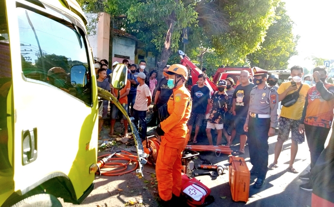 “Dari arah timur tiba-tiba ada sepeda motor melaju dengan kecepatan sedang. Untuk menghindari tabrakan, kemudian sopirnya terkejut,”kata Sumarna.