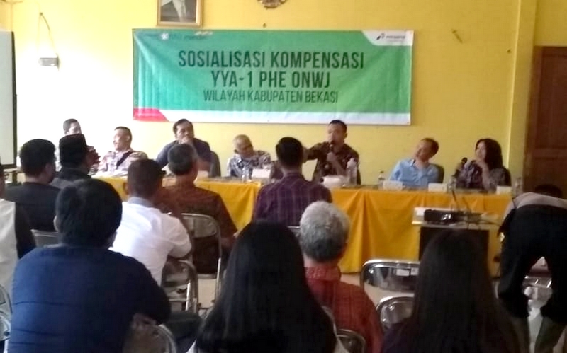 Camat Muara Gembong memimpin sosialisasi mekanisme kompensasi masyarakat yang terkena dampak YYA-1 PHE ONWJ, bersama Muspika dan pihak Pertamina, Selasa (2/10/19).