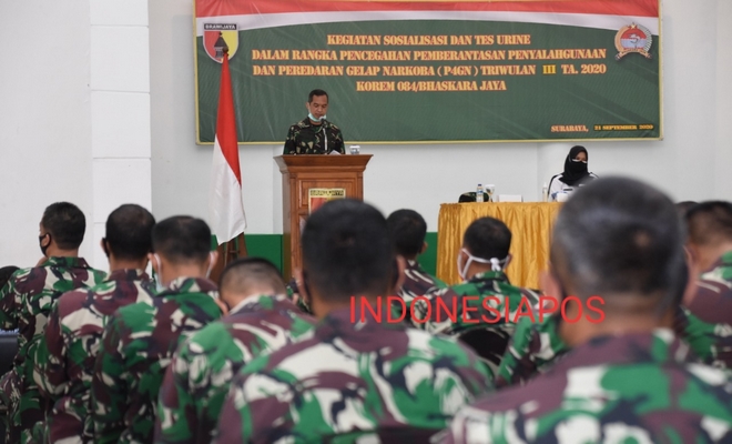 Danrem 084/Bhaskara Jaya Brigjen TNI Herman Hidayat Eko Atmojo melalui Kasi Intel, Kolonel Inf Andi Gus Wulandri, menyampaikan, kegiatan ini bertujuan untuk mengantisipasi potensi penyalahgunaan Narkoba dan obat-obatan berbahaya lainnya yang dapat menimbulkan dampak buruk bagi prajurit, PNS dan keluarganya terlebih di masa pandemi Covid-19 ini.