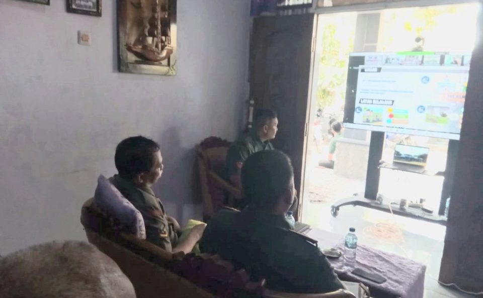 Dandim 0826 Pamekasan Letkol Inf Ubaydillah bersama Kasdim dan Pj. Pasi Pers mendampingi Serda Musleh anggota Bakodim melaksanakan Video Conference (Vidcon) dengan Panglima Kodam (Pangdam) V Brawijaya Mayjen TNI Farid Makruf. M.A. Kamis (23/11/2023).