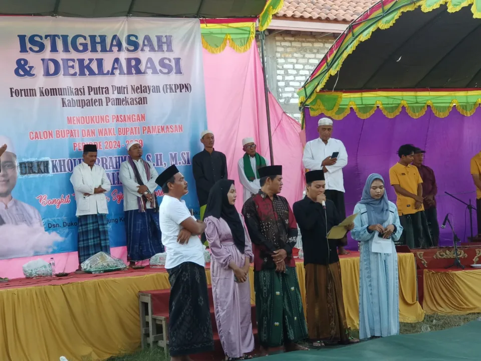 Forum Komunikasi Putra Putri Nelayan (FKPPN) bersama ratusan masyarakat Desa Tanjung, Kecamatan Pademawu, Kabupaten Pamekasan mendeklarasikan KH Kholilurrahman dan H Halili.