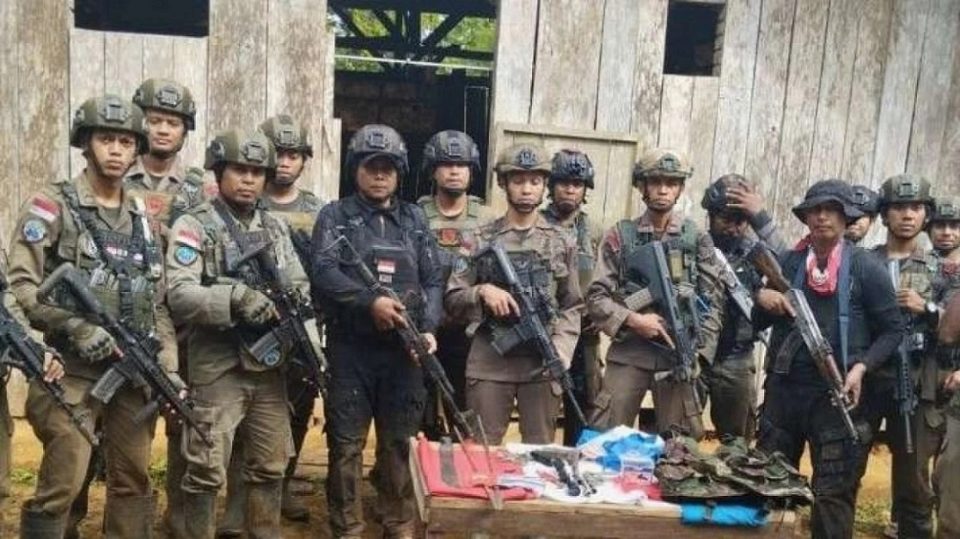 Dalam pengrebekan itu, aparat menemukan 1 buah senjata api rakitan berbahan kayu menyerupai pistol dan 1 buah pistol korek api merk P, dan juga 1 buah rompi warna loreng berserta puluhan barang bukti lainya termasuk bendera Bintang Kejora berukuran 25cm x 15cm, Jumat 16 Juni 2023.