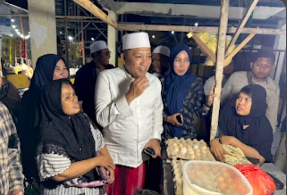 Masyarakat yang lagi nongkrong di lesehan, dan para pedagang yang lagi melayani pembeli di Pasar Margalela, sangat senang ketika melihat kedatangan H Slamet Junaidi Senin (7/10/2024) malam.
