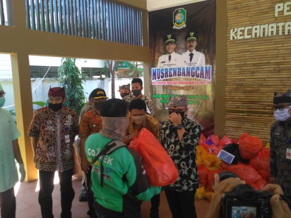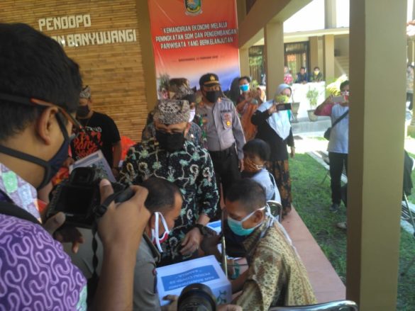 Bantuan tersebut mulai digulirkan ke warga. Secara simbolis, dilakukan Bupati Abdullah Azwar di dampingi oleh sekertaris daerah, Mujiono, memberikan sembako tersebut kepada para penerima yang terdiri atas pedagang kaki lima, penarik ojek online (OJOL), dan warga disabilitas dengan menjalankan protokol kesehatan di aula Kantor Camat Banyuwangi, Kamis (9/4/2020).