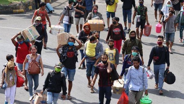 Memasuki H-5 Lebaran 1441 H, ratusan Pemudik dari Bali mulai memadati pelabuhan Angkutan Sungai Danau dan Penyebarngan (ASDP) Ketapang Banyuwangi, Senin (18/5/2020).