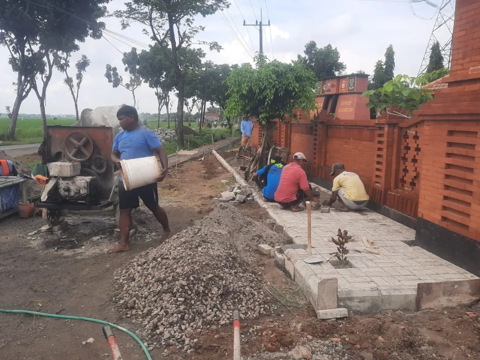 Pemdes Simo Bangun Saluran Drainase Dan Pavingisasi Di Halaman Kantor Desa