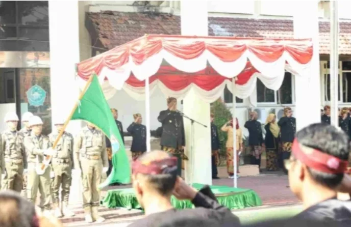 Pemerintah Kabupaten (Pemkab) Pamekasan, Madura menggelar upacara hari jadi Provinsi Jawa Timur ke 79 berlangsung di halaman Kantor Bupati, Jalan Kabupaten.