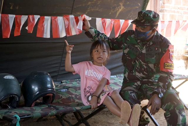 Salah Satu pawas satgas TMMD 109 Lettu Arh Sugik memberikan wawasan kebangsaan dan cinta Tanah Air kepada bocil yang sering bermain ke Posko TMMD 109 Kodim/ Nganjuk, saat melaksanakan sosialisasi ada yang menarik perhatian, menurutnya yaitu bocil yang akrab dipanggil Najwa.