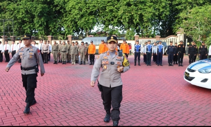 Kapolres Sumenep, AKBP Edo Satya Kentriko memimpin apel pengamanan malam tahun baru 2024. di Lapangan Apel Sanika Satyawada. Minggu (31/12/2023)
