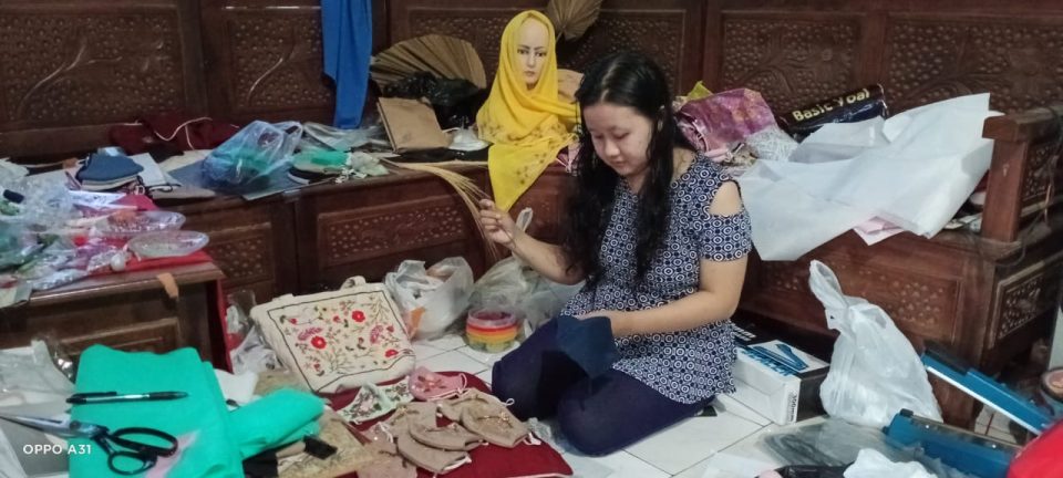 Alfin Andriani seorang pengrajin sulam “Jillbab Craft” warga jalan Karto Darmo RT 02 RW 02 desa Jimbe kecamatan Kademangan kabupaten Blitar menekuni sulam jilbab, dan masker sulam.