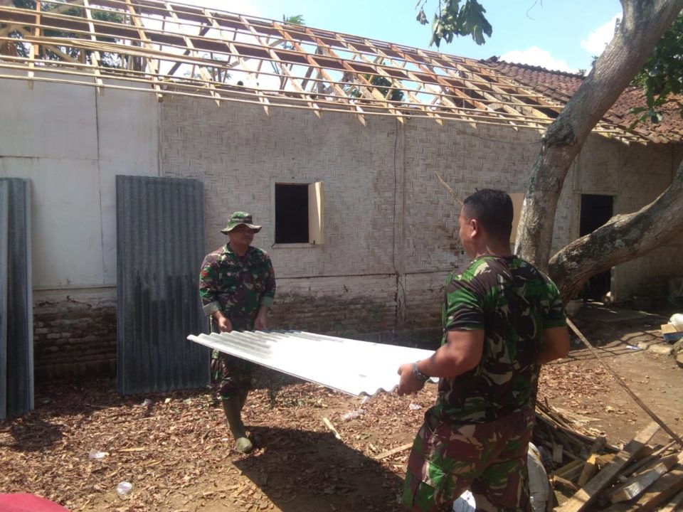 Terlihat nyata di lapangan, dengan Ikhlas Para Babinsa Kecamatan Kota Bondowoso membantu pak Supriyadi memperbaiki rumah yang rusak akibat angin dan hujan deras .