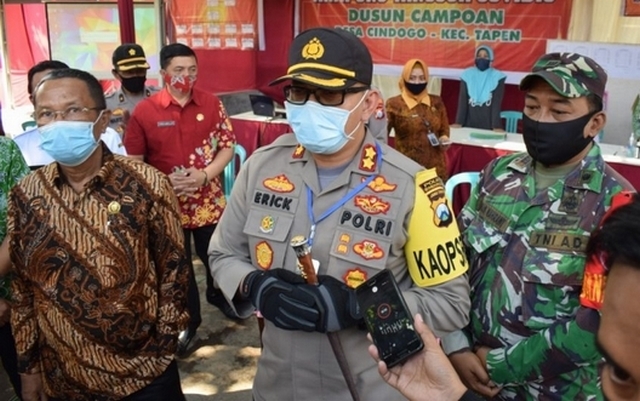 Menurut Kapolres Erick, aplikasi ini diinisiasi oleh Polres Bondowoso yang selanjutnya direalisasikan bersama gugus tugas percepatan penanganan Covid-19. Tentu, aplikasi ini pun dibuat untuk mendukung keberadaan kampung tangguh yang salah satunya dilaksanakan di Desa Cindogo ini.