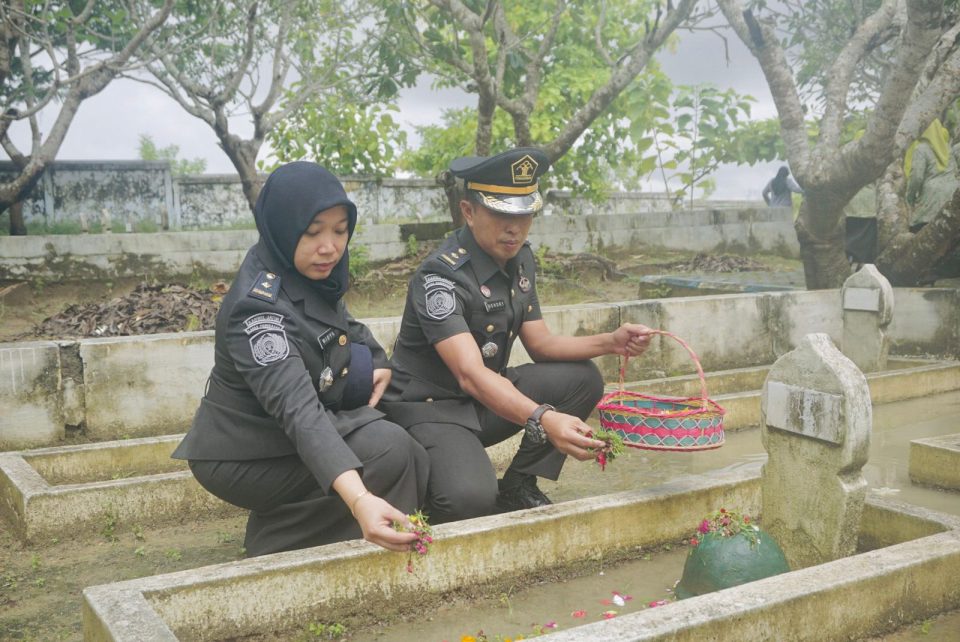 Pelaksana Tugas (Plh) Kepala Lapas Pamekasan Anggre Anandayu bersama jajaranya melekukan ziarah makam pahlawan dan upacara tabur bunga.