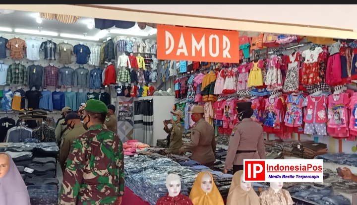 Dengan menggunakan pengeras suara petugas gabungan menyampaikan imbauan protokol kesehatan serta mengimbau kepada pemilik toko dan warga untuk selalu mematuhi protokol kesehatan,