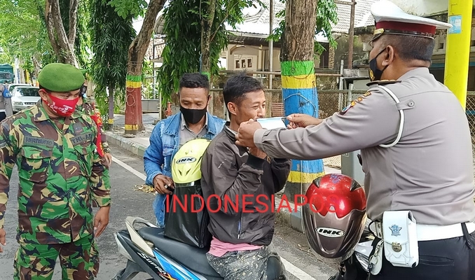 Petugas gabungan dari TNI-Polri dan Satpol PP menggelar Operasi Yustisi protokol kesehatan (prokes) Covid-19, di Kota Pamekasan. Jum’at (11/12/2020) di Area Arek Lancor sebelah Timur Jalan Jokotole.