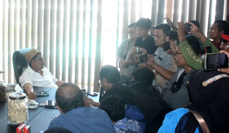 Owner Perusahaan Rokok (PR) Bawang Mas sekaligus Ketua Paguyuban Pelopor Petani dan Pedagang Tembakau Se Madura (P4TM) H. Khairul Umam (H. Her) mengundang ratusan wartawan, di Gudang Induk PT.Bawang Mas Center, Jalan Raya Blumbungan pada Juma’at (25/10/2024).