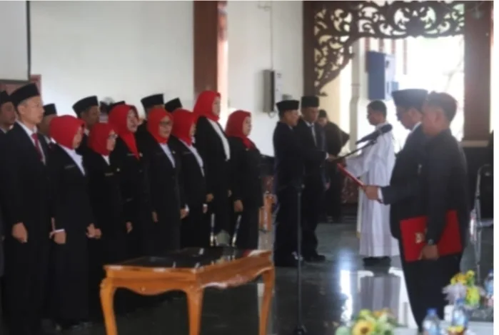 Pj. Bupati Pamekasan, Madura, Jawa Timur, Masrukin melantik 33 pengawas sekolah untuk tingkat TK, SD, dan SMP di Mandhapa Aghung Ronggosukowati, Kamis (14/11/2024) siang.