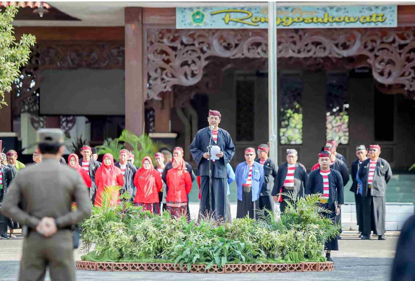 Pejabat Bupati Pamekasan bersama jajaran aparatur sipil negara ASN apel dilapangan negara bakti Mandhapa Aghung Ronggosukowati. Selasa.
