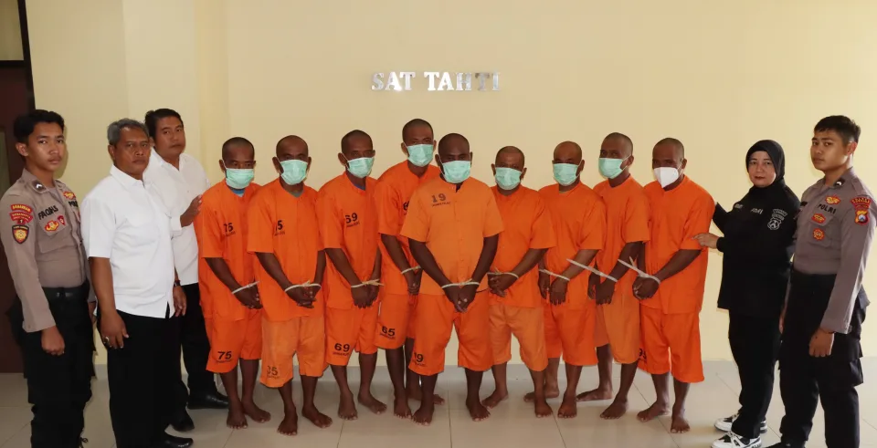 sedikitnya ada sembilan nelayan yang diamankan diantaranya, SN (39), SA (30), SH (33), JN (29), IW (29), MS (45), SP (37), NH (45) serta SH (40). Semuanya warga Desa Brakas Kecamatan Raas, Kabupaten Sumenep Madura.