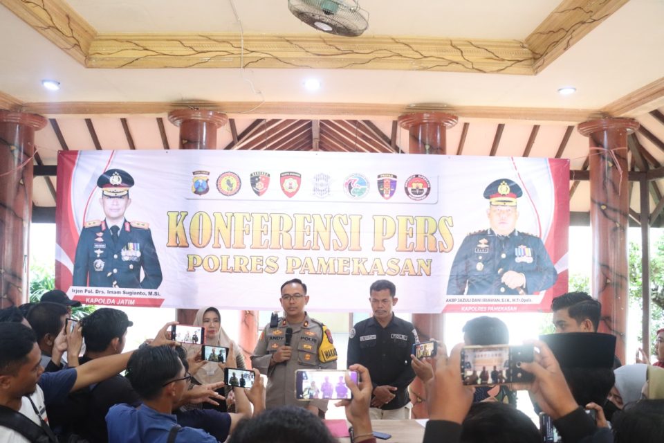 Wakapolres Pamekasan, Kompol Andy Purnomo saat di dampingi Kasi Humas AKP Sri mengatakan, tiga orang terduga pelaku pelemparan bahan peledak yang diduga bom ikan (bondet) dirumah Ketua KPPS Desa Nyalabu Daya.