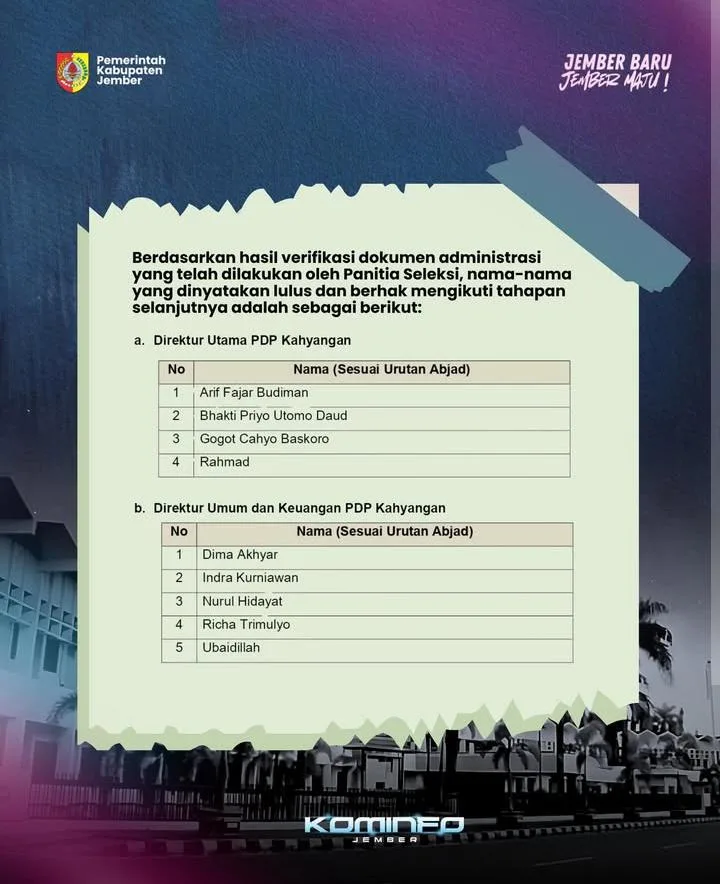 Setelah sempat nangkring dalam jajajran Tim Percepatan Pembangunan Daerah (TP3D), tim yang aktif melakukan mengkoordinir para kepala OPD selama kurang lebih 2 tahun, kini 3 nama penting dalam tim TP3D sekaligus mantan timses bupati M Fawaid masuk daftar calon direksi di Perumahan Daerah Perkebunan (PDP) Khayangan Jember.