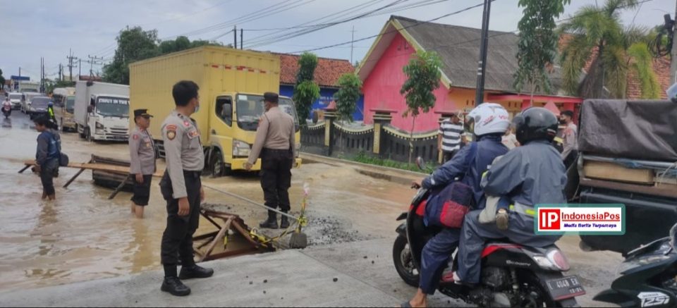 Polres Bangkalan Terjunkan Personil Urai Kemacetan, Akibat Banjir Setelah Diguyur Hujan