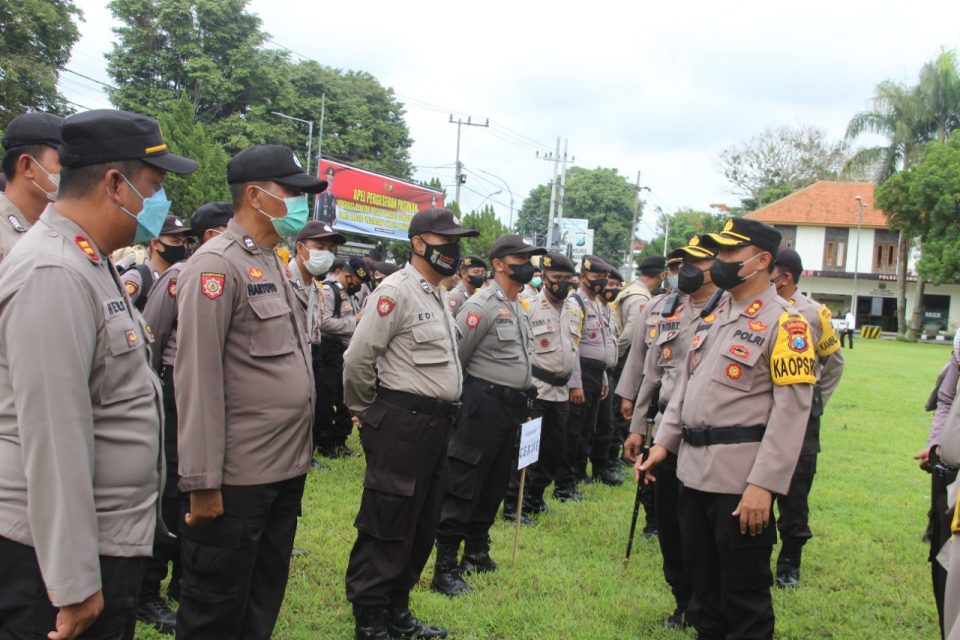 Kapolres Bondowoso, AKBP Herman Priyanto, dalam apel pergeseran pasukan operasi mantap praja, di Halaman Mapolres, Minggu (14/11/2021), menekankan, agar semua anggota waspada untuk menjaga keamanan dan turut menekankan pentingnya disiplin protokol kesehatan kepada masyarakat.